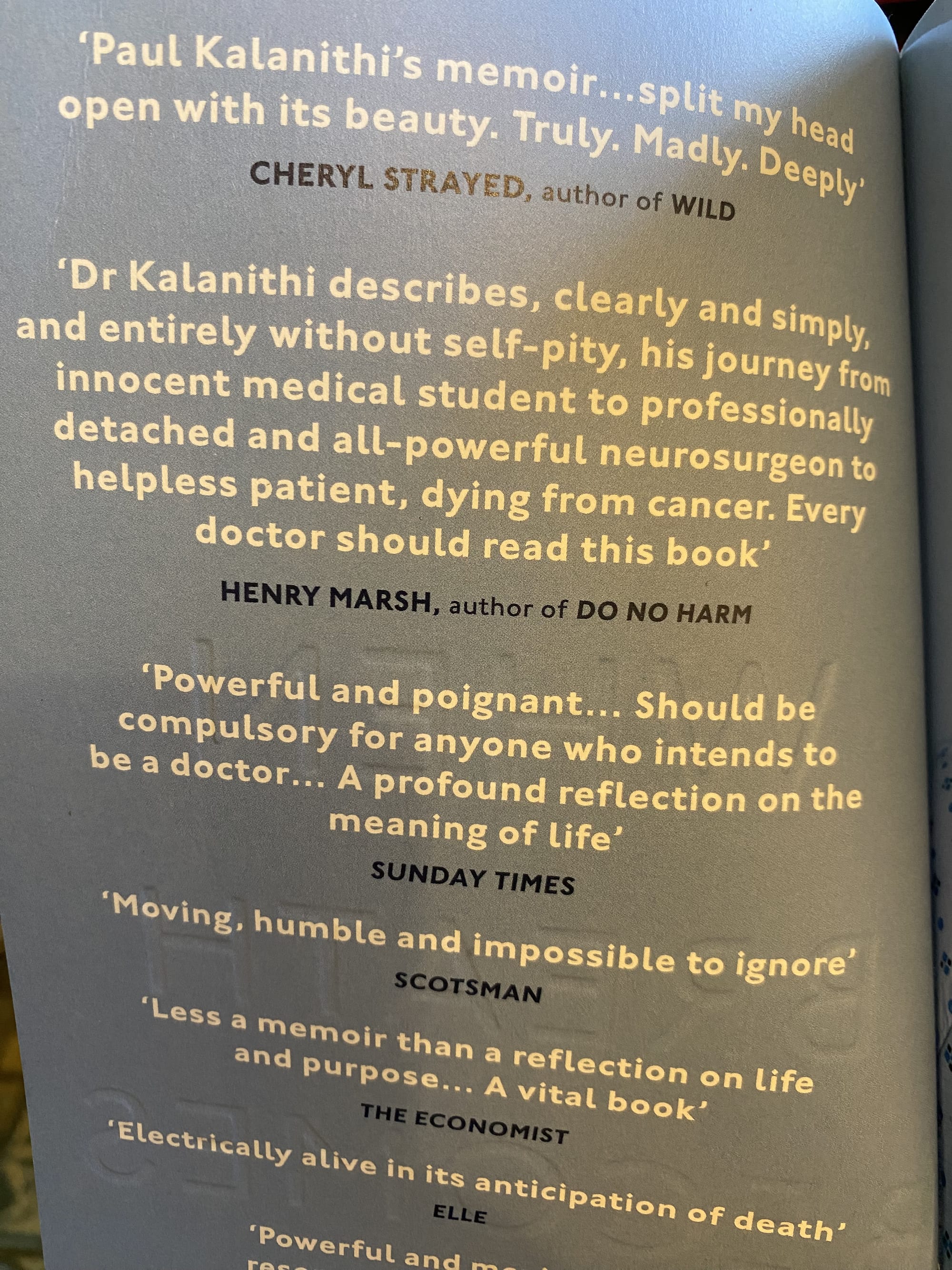That's why I wrote this post. I now know what I think about When Breath Becomes Air and have moved an inch forward in the mile that separates Paul and I.