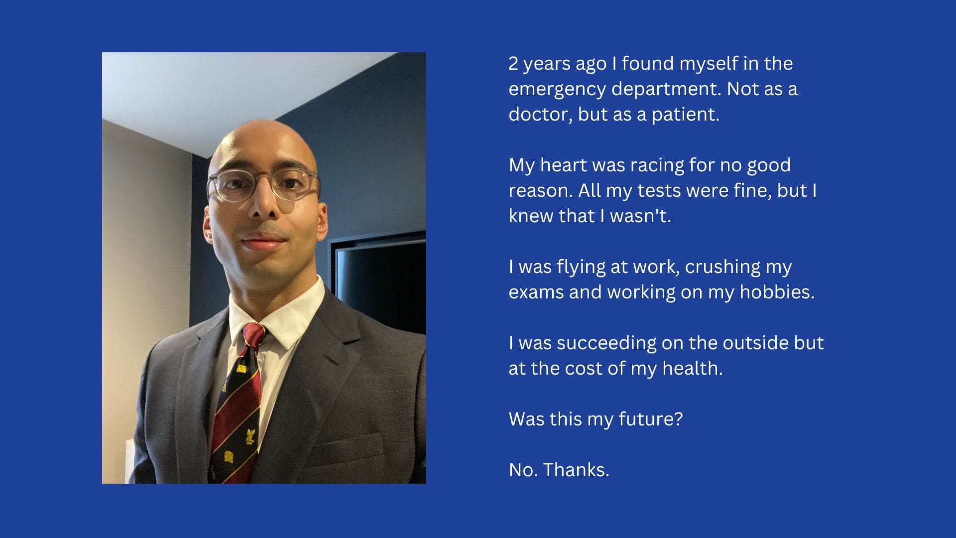 There are 9.2 million doctors in the world. 66% are worn out at the end of the day. 55% of medical students are emotionally exhausted. Two years ago, I used to be one of those numbers.