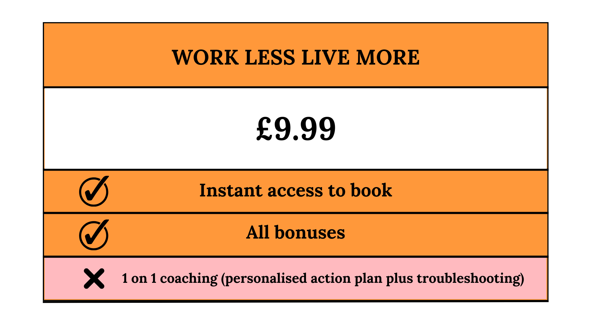 So if for any reason you decide Work Less, Live More isn't right for you, just drop me an email within 30 days and I'll refund you the cost.